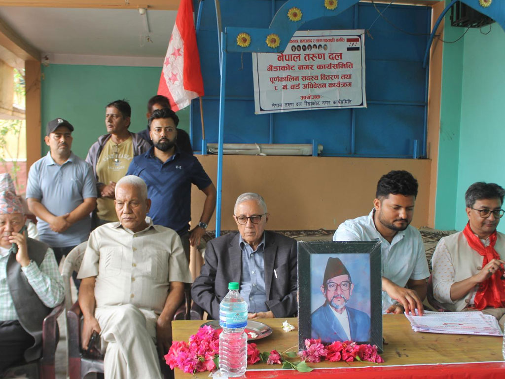 नवलपरासी (बर्दघाट–सुस्तापूर्व) को गैँडाकोटमा आज आयोजित नेपाल तरुण दलको पूर्णकालीन सदस्यता वितरण कार्यक्रममा उहाँले भविष्यमा देशको नेतृत्व युवाले गर्ने भएकाले राष्ट्रलाई केन्द्रमा राखेर काम गर्न उनीहरुलाई आह्वान गर्नुभयो ।